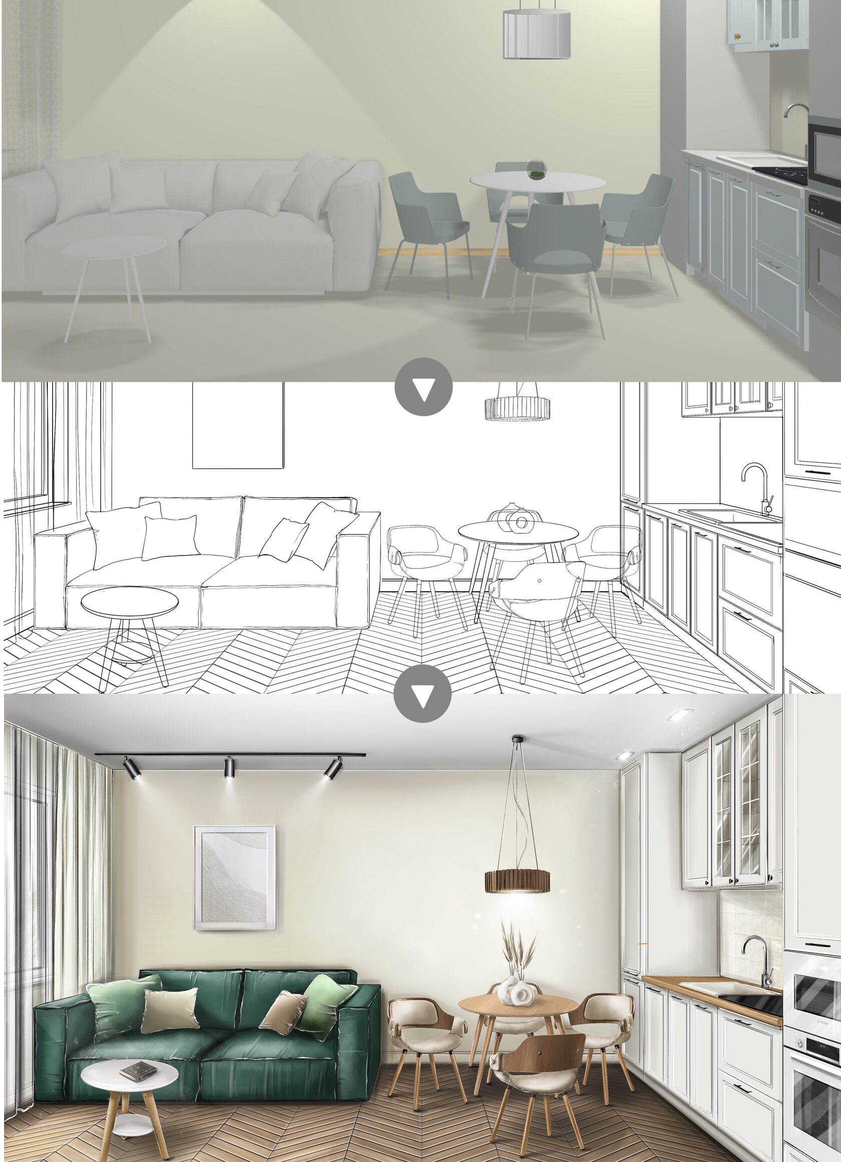 Уникальная возможность визуализировать свою концепцию прямо на фото объекта! Больше не нужно ломать голову о том, как донести свою идею до заказчика